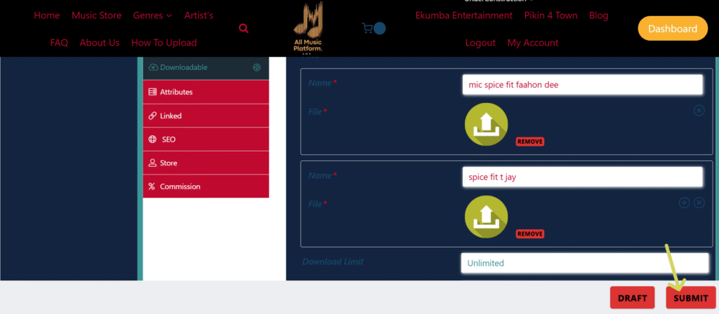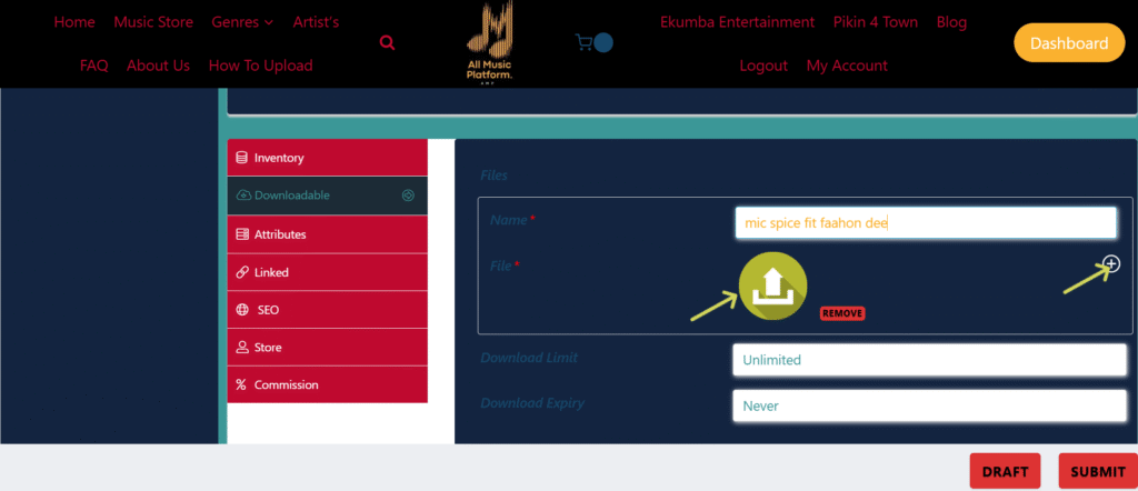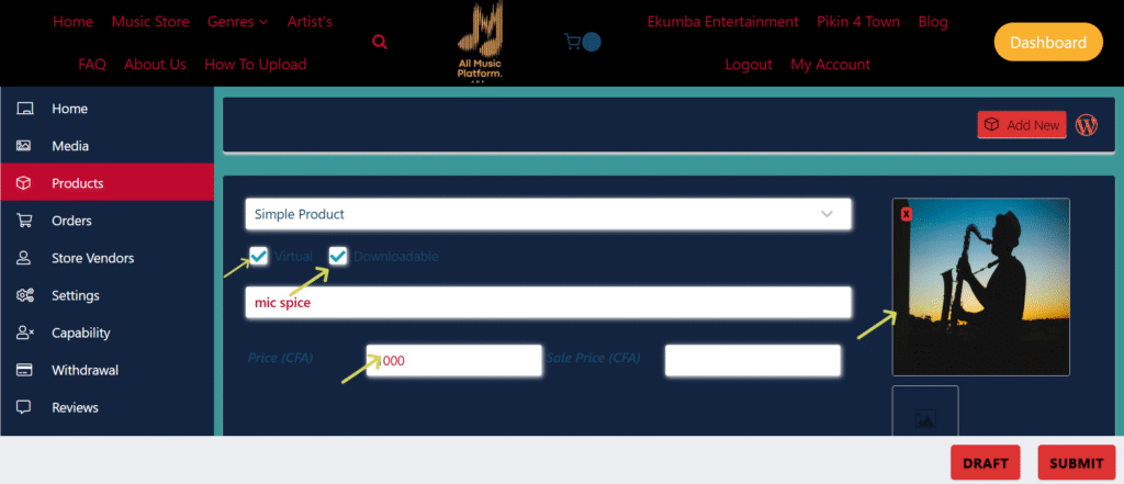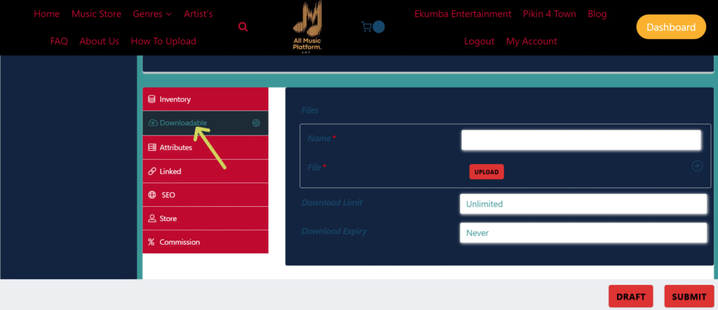 Fill in the required information, make sure to check the boxes virtual & downloadable,